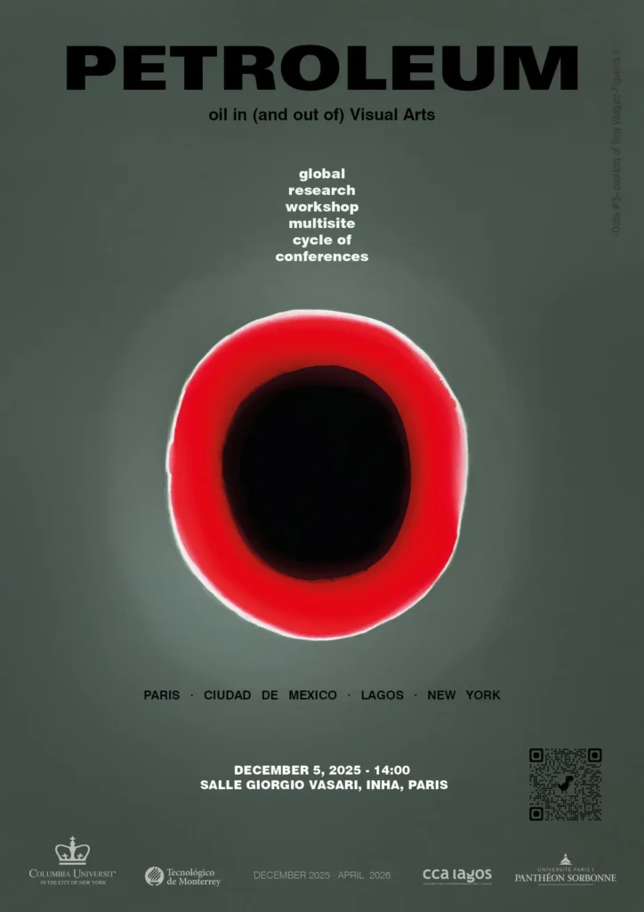 How is the imperative of energy transition changing the art world? How are artists, curators, critics, conservators and restorers working towards a world without oil? To answer these questions, we intend to bring together artists, activists, curators, researchers and other art world actors in four cities in Atlantic countries with strong links to the history of oil: Lagos, Mexico City, New York and Paris. Over the course of four half-days, we propose to discuss across fields of activities and continents recent developments in contemporary art practices linked to ecological objectives, as well as the transformation of imaginary images of oil in the visual arts.